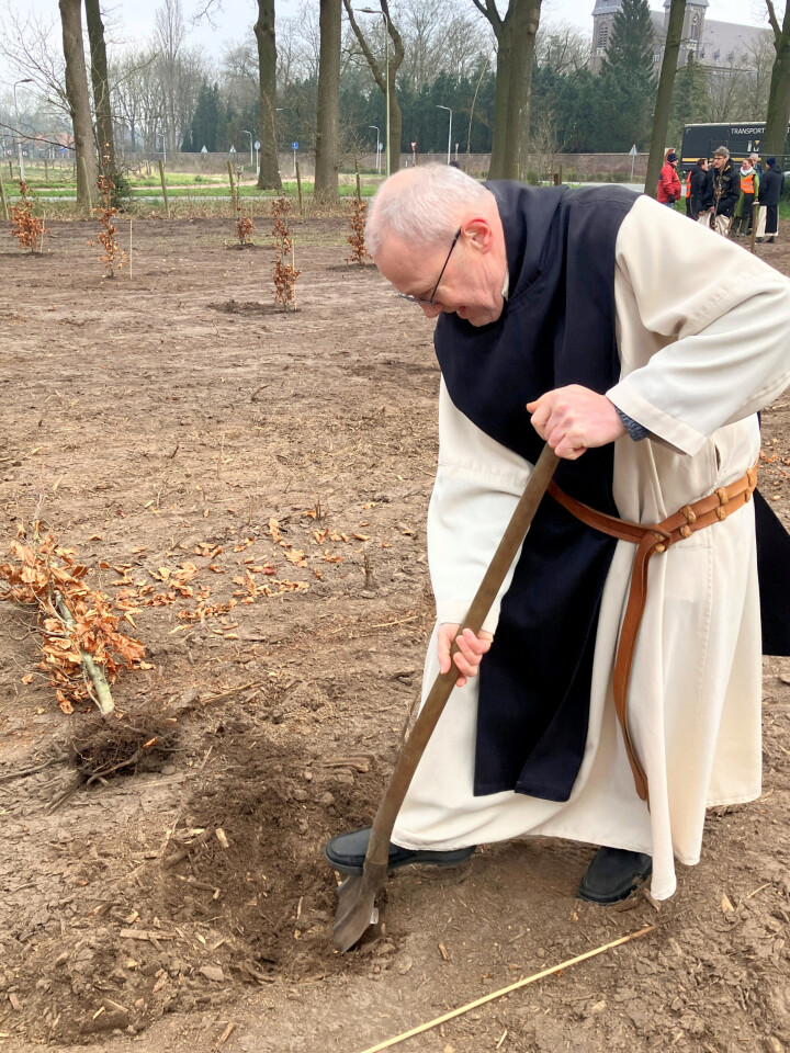 10 april 2025 - Op 25 maart jl. is vóór de abdij, in het kader van de jaarlijkse Boomplantdag, een begin gemaakt met wat het Nillis-bos gaat worden. Monniken, medewerkers van de abdij, brouwerij en Diamant-groep plantten 130 jonge boompjes die de komende decennia uitgroeien tot een prachtig bos.