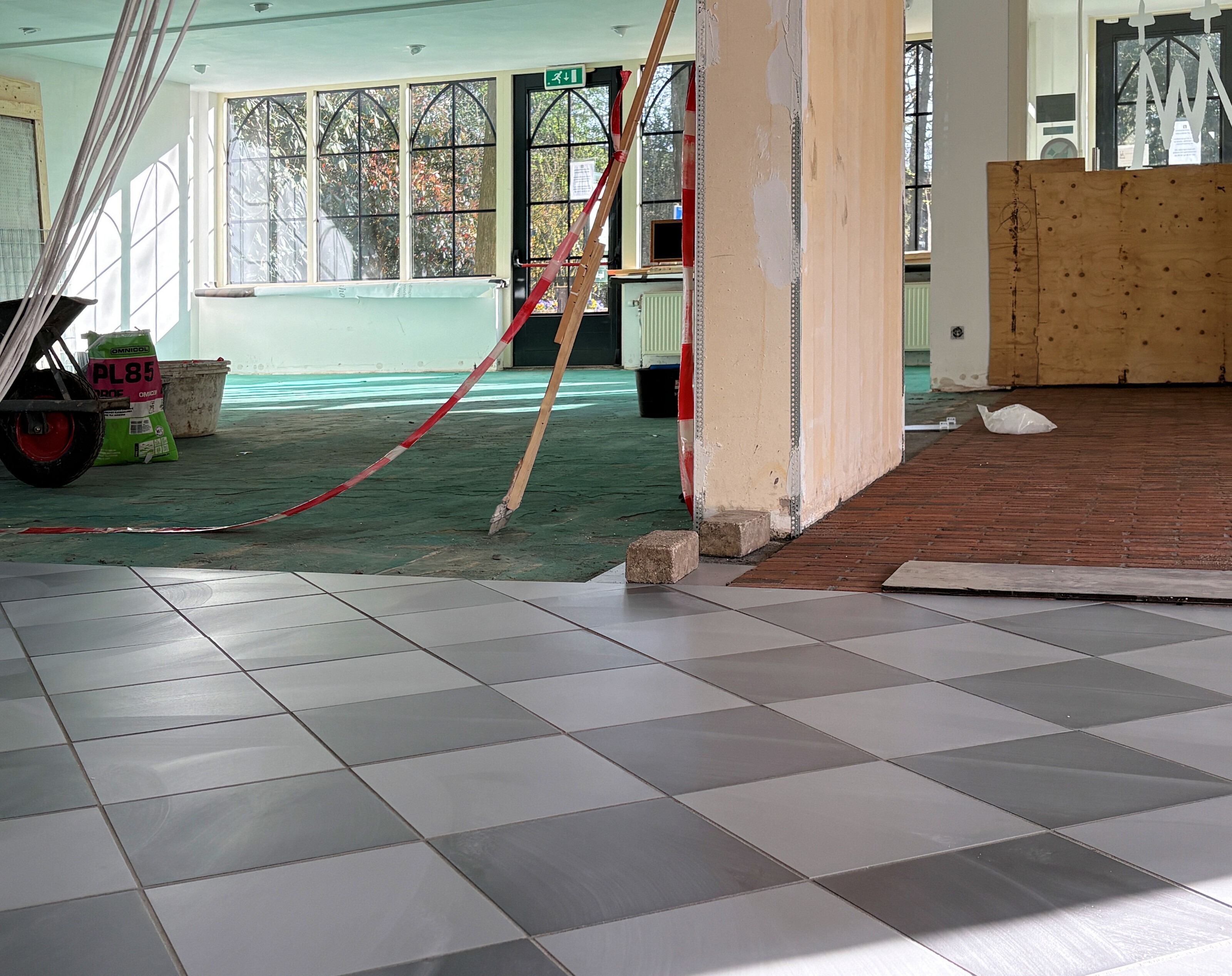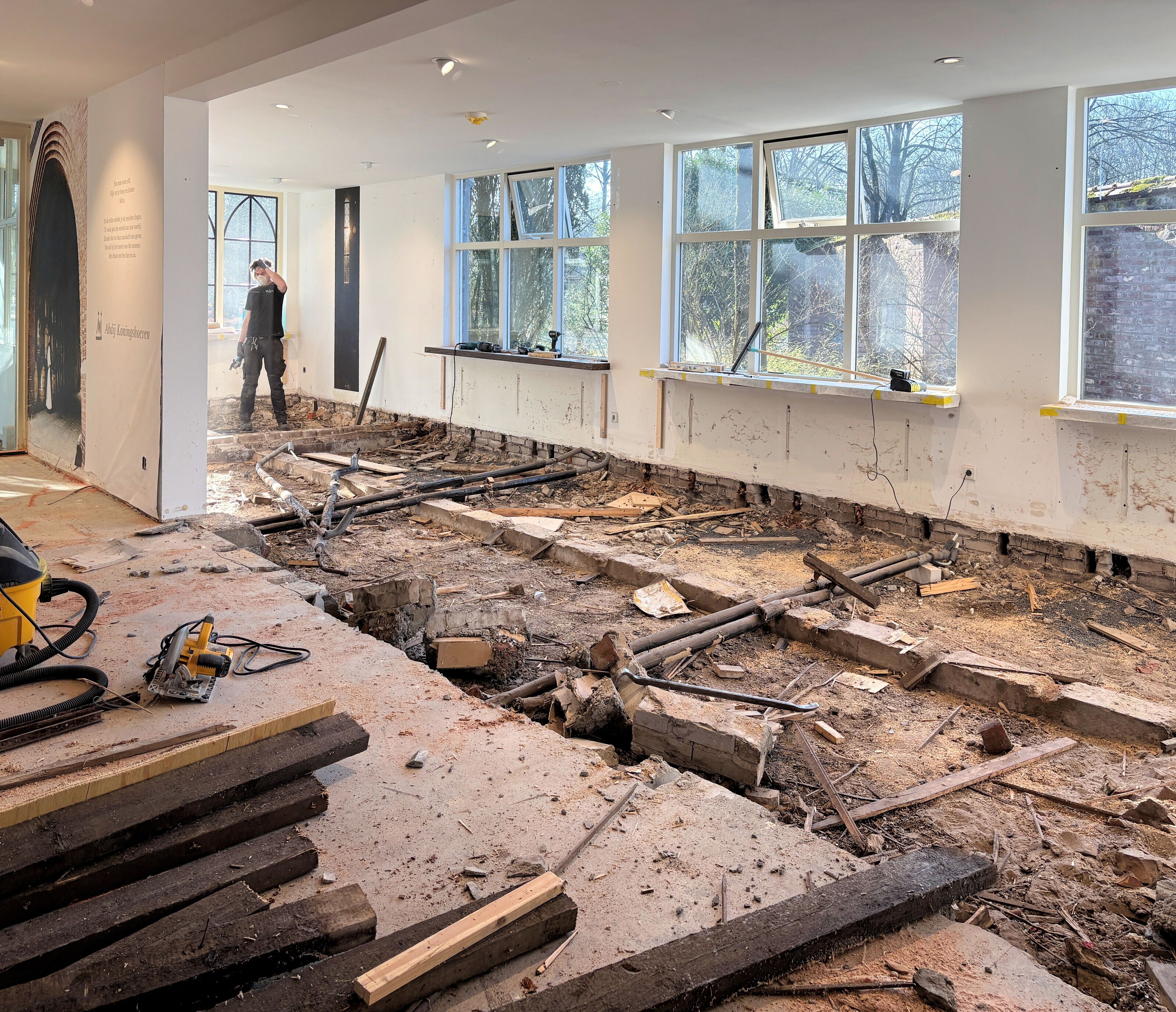 … en de nieuwe vloer, mét karakteristieke kloosteruitstraling, krijgt al vorm.